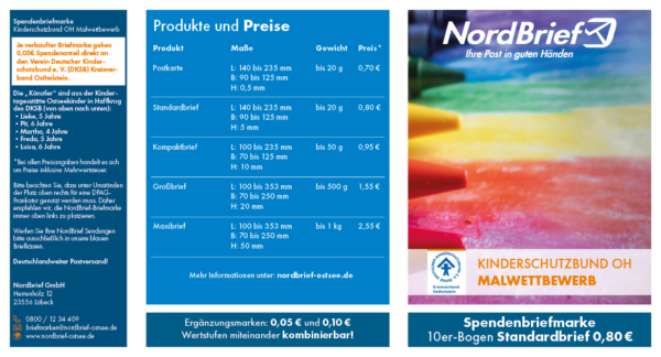 „Diese Briefmarken sind nicht nur ein Zeichen unserer Verbundenheit mit der Region, sondern auch eine Möglichkeit, den Kinderschutzbund Kreisverband Ostholstein e.V. zu unterstützen.“, sagt Christian Burmester, Vertriebsleiter der NordBrief GmbH.